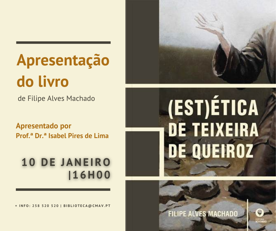 O professor e investigador Filipe Alves Machado lança no sábado, dia 10 de janeiro, pelas 16h00, o livro A (Est)ética de Teixeira de Queiroz, um ensaio dedicado à análise da obra de Francisco Teixeira de Queiroz (1848-1919), político, empresário e escritor.