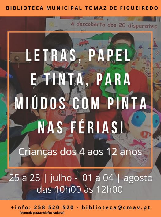 De 25 de julho a 4 de Agosto a Biblioteca Municipal proporciona duas semanas dedicadas à nossa cultura, tradições e artesanato, com atividades divertidas e diferentes, destinadas às crianças residentes e também às que estão de férias no nosso concelho, para que conheçam um pouco mais sobre a riqueza do nosso património!