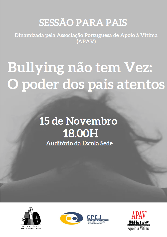 Reconhecendo a importância do papel dos pais na prevenção da violência e do bullying nas escolas, o Município de Arcos de Valdevez e a Comissão de Proteção de Crianças e Jovens (CPCJ), convidam todos os pais e encarregados de educação para uma Sessão denominada "Bullying Não Tem Vez: O Poder dos Pais Atentos" com vista a capacitá-los para melhor lidar com esta problemática.