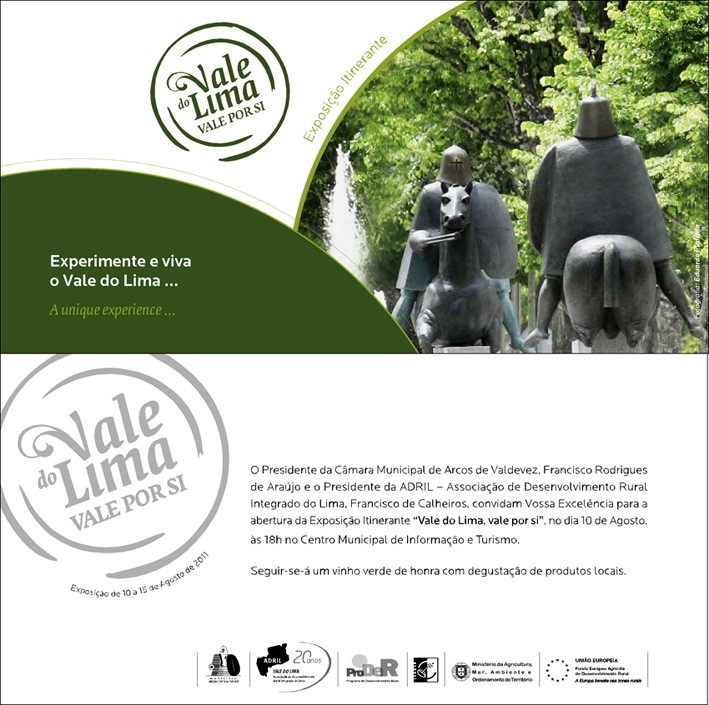 A abertura da Exposição Itinerante " Vale do Lima, vale por si" realizar-se-á no próximo dia 10 de Agosto, às 18h no Centro Municipal de Informação e Turismo de Arcos de Valdevez.