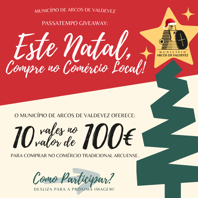 Este passatempo será realizado, em simultâneo, no Instagram e no Facebook do Município de Arcos de Valdevez e consiste na entrega, por sorteio aleatório, de 10 vales no valor de 100€. A participação é gratuita e de fácil acesso. Visite as nossas redes sociais.