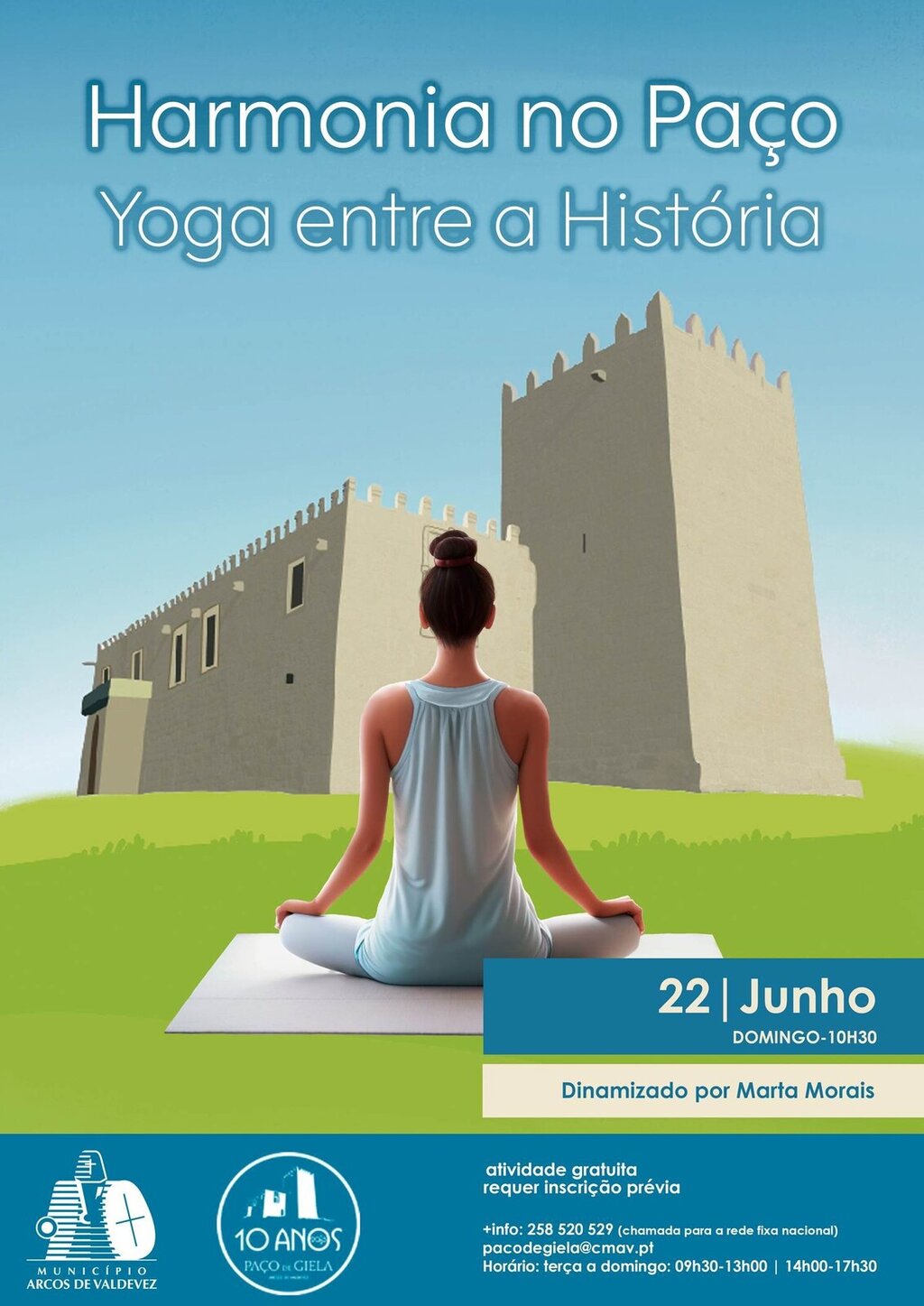 O Paço de Giela vai proporcionar uma sessão de yoga relaxante e rejuvenescedora, uma experiência de bem-estar e revitalizante para todos aqueles que queiram participar.
