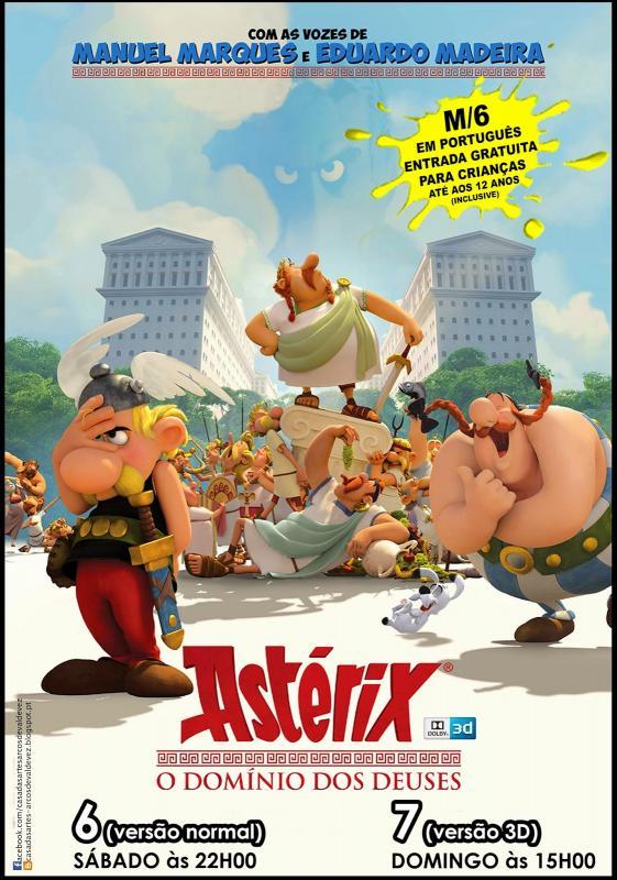 É uma versão dobrada em português, no Sábado poderão assistir à versão normal pelas 22horas e no Domingo à versão 3D pelas 15horas com entrada gratuita para crianças até aos 12 anos. "Asterix: Domínio dos Deuses" acompanha a tentativa de Júlio César de conquistar a vila de Astérix com a construção de uma cidade romana ao redor do reduto gaulês, chamada Domínio dos Deuses, para que sejam "obrigados a adaptar-se ou desaparecer".