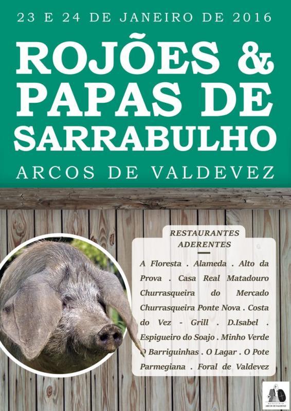 O Município de Arcos de Valdevez, no âmbito da dinamização dos Ciclos Gastronómicos com destaque para a divulgação da "Gastronomia e Vinhos", como produto de Excelência e qualidade do Concelho, vai realizar o "Ciclo Gastronómico dos Rojões & Papas de Sarrabulho" a decorrer nos próximos dias 23 e 24 de Janeiro de 2016.