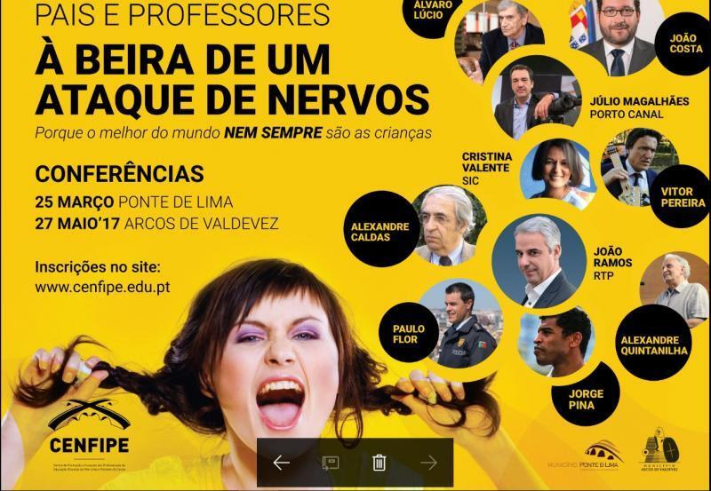 O CENFIPE - Centro de Formação e Inovação dos Profissionais de Educação das escolas do Alto Lima e Paredes de Coura, mobilizando vários parceiros - organiza em 2017 mais um evento marcante no campo da Educação. Trata-se de um Ciclo de Conferências que numa primeira fase (2017) será realizado nos Concelhos de Ponte de Lima (25 de Março) e de Arcos de Valdevez (27 de Maio) e já em 2018 em Paredes de Coura e Ponte da Barca.