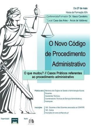 No dia 7 de Abril de 2015 entrou em vigor o NOVO CÓDIGO DO PROCEDIMENTO ADMINISTRATIVO. De modo a dar a conhecer as principais alterações introduzidas pelo D.L. 4/2015 de 7 de Janeiro, o CENFIPE - Centro de Formação e Inovação dos Profissionais de Educação/Escolas do Alto Lima e Paredes de Coura promove uma sessão formativa eminentemente prática de 6 horas com o Jurista Dr. Vasco Cavaleiro.